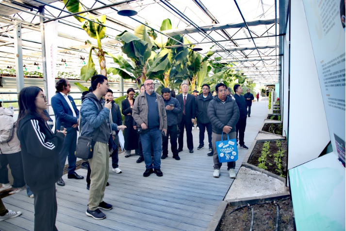 中外专家考察了北京朝来农艺园,先后参观了数字化管理展厅、番茄生产区、水肥车间、育苗车间及自动化连栋温室、日光温室生产区等 10 个核心区域,了解智能种植、无土栽培、水肥一体化、自动化采收等现代设施农业技术,交流现代设施农业的种植模式、管理技术与产出效益,感知中国设施农业的发展迭代历程。